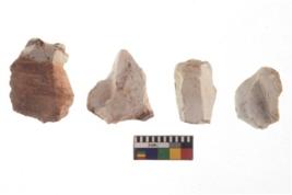 | Description / विवरण | There are n 4 of utilized worked cores and show irregular scar pattern on both dorsal and ventral side. Two have broken tip. |