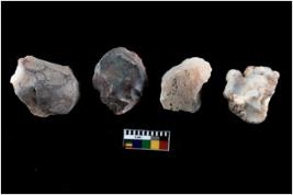 | Description / विवरण | There are n 4 of utilized worked cores and show irregular scar pattern on both dorsal and ventral side. They have sharp edges. |