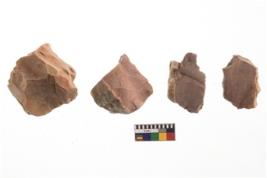 | Description / विवरण | There are n 4 of utilized worked cores and show irregular scar pattern on both dorsal and ventral side. One has a broken tip. |