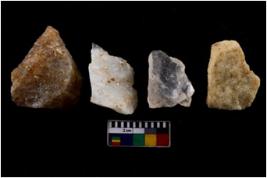 | Description / विवरण | Specimen of a cores with several broad fluted marks and some of them are tapering at one end. |