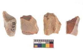 | Description / विवरण | There are n 4 of utilized worked cores and show irregular scar pattern. Two have a broken tip while two are tapering at one end. |