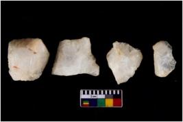 | Description / विवरण | Specimen of a cores with several broad fluted marks and some of them are tapering at one end. |
