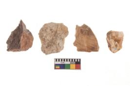 | Description / विवरण | There are n 4 of utilized worked cores and show irregular scar pattern on both dorsal and ventral side. Two have a flat base. |