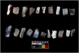 | Description / विवरण | There are n 20 flakes tool; there are multidirectional irregular scar pattern on them; made of short flakes and few have tapering edges. |