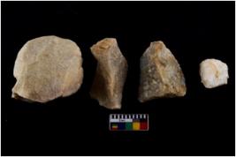 | Description / विवरण | Specimen of a cores with several broad fluted marks and some of them are tapering at one end. |