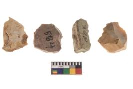 | Description / विवरण | There are n 4 of utilized worked cores and show irregular scar pattern on both dorsal and ventral side. Two have a broken tip. |