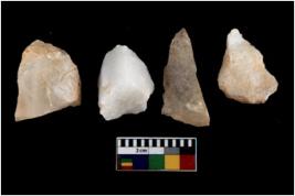| Description / विवरण | There are n 4 cores; there are multidirectional irregular scar pattern on them. The flake scars are seen on all sides.One is pointed functional top. |
