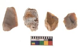 | Description / विवरण | There are n 4 of utilized worked cores and show irregular scar pattern on both dorsal and ventral side. Three have a broken tip. |