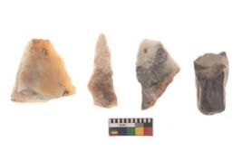 | Description / विवरण | There are n 4 of utilized worked cores and show irregular scar pattern. Two have a broken tip. |