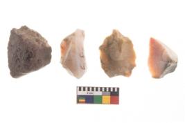 | Description / विवरण | There are n 4 of utilized worked cores and show irregular scar pattern on both dorsal and ventral side. Three are tapering at one end. |