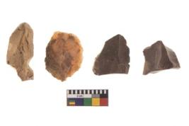 | Description / विवरण | There are n 4 of utilized worked cores and show irregular scar pattern on both dorsal and ventral side. They have sharp edges. |