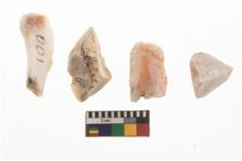 | Description / विवरण | There are n 4 of utilized worked cores and show irregular scar pattern on both dorsal and ventral side. One is elongated in shape. |