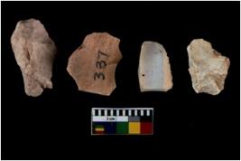| Description / विवरण | There are n 4 of utilized worked cores and show irregular scar pattern on both dorsal and ventral side. Two have aflat base. |