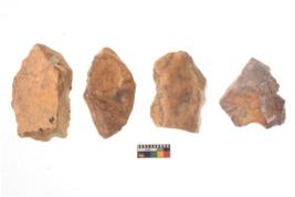 | Description / विवरण | There are n 4 of utilized worked cores and show irregular scar pattern on both dorsal and ventral side. One has a broken tip. |