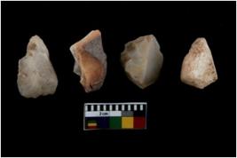 | Description / विवरण | There are n 4 of utilized worked cores and show irregular scar pattern on both dorsal and ventral side. Three are tapering at one end. |
