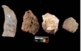 | Description / विवरण | There are n 4 of utilized worked cores. They show multidirectional irregular scar pattern. One is tapering at one end and is elongated in shape. |