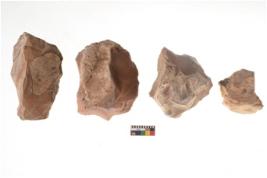 | Description / विवरण | There are n 4 of utilized worked cores and show irregular scar pattern on both dorsal and ventral side. Three have a broken tip. |