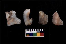 | Description / विवरण | There are n 4 of utilized worked cores and show multidirectional irregular scar pattern on both dorsal and ventral sides. Three are tapering at one end. |