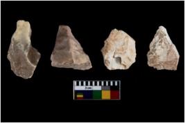 | Description / विवरण | There are n 4 of utilized worked cores and show irregular scar pattern on both dorsal and ventral side. Three are tapering at one end. |
