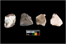 | Description / विवरण | There are n 4 of utilized worked cores and show irregular scar pattern on both dorsal and ventral side. One has a broken tip. |