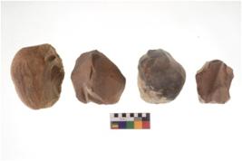 | Description / विवरण | There are n 4 of utilized worked cores and show irregular scar pattern on both dorsal and ventral side. One has a flat base. |