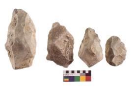 | Description / विवरण | There are n 4 of utilized worked specimens; they show large and deep scars; evident use of hammer technique. |