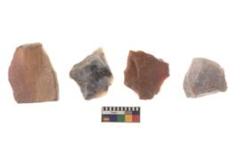 | Description / विवरण | There are n 4 of utilized worked cores and show irregular scar pattern on both dorsal and ventral side. Two have a flat base. |
