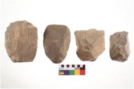 | Description / विवरण | There are n 4 of utilized worked specimens; made on slabs and rounded nuclei with bifacial working edges and one has a flat base. |
