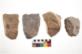 | Description / विवरण | There are n 4 of utilized worked specimens;made on slabs and rounded nuclei with bifacial working edges. |