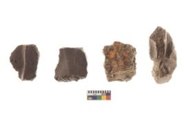 | Description / विवरण | There are n 4 of utilized worked cores and show irregular scar pattern on both dorsal and ventral side. Three have a broken tip. |