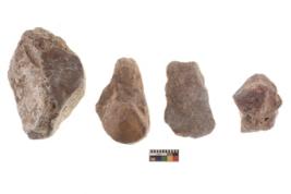 | Description / विवरण | There are n 4 of utilized worked cores and show irregular scar pattern on both dorsal and ventral side. One has a flat base as well as a broken tip. |