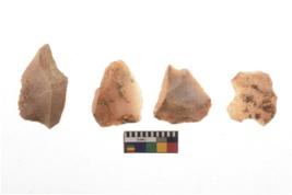 | Description / विवरण | There are n 4 of utilized worked cores and show irregular scar pattern on both dorsal and ventral side. They have sharp edges. |