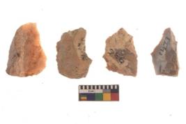 | Description / विवरण | There are n 4 of utilized worked cores and show irregular scar pattern on both dorsal and ventral side. Two have a flat base. |
