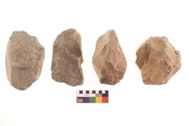 | Description / विवरण | There are n 4 of utilized worked specimens; made on slabs and rounded nuclei with bifacial working edges. |