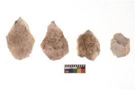 | Description / विवरण | There are n 4 of utilized worked cores and show irregular scar pattern on both dorsal and ventral side. Three are tapering at one end. |