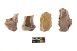 | Description / विवरण | There are n 4 of utilized worked cores and show irregular scar pattern on both dorsal and ventral side. One has a broken tip. |