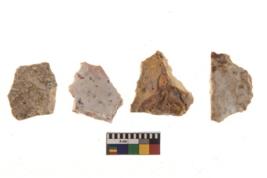 | Description / विवरण | There are n 4 of utilized worked cores and show irregular scar pattern on both dorsal and ventral side. Two have a broken tip. |