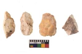 | Description / विवरण | There are n 4 of utilized worked cores and show irregular scar pattern on both dorsal and ventral side. Three are tapering at one end. |
