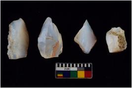 | Description / विवरण | There are n 4 of utilized worked cores and show scar pattern. One has a flat base. |