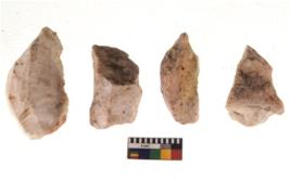| Description / विवरण | There are n 4 of utilized worked cores and show irregular scar pattern on both dorsal and ventral side. Three are tapering at one end. |