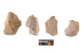 | Description / विवरण | There are n 4 of utilized worked cores and show irregular scar pattern on both dorsal and ventral side. They have sharp edges. |