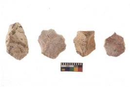 | Description / विवरण | There are n 4 of utilized worked cores and show irregular scar pattern on both dorsal and ventral side. Two have a broken tip. |