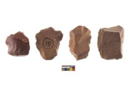 | Description / विवरण | There are n 4 of utilized worked cores and show irregular scar pattern on both dorsal and ventral side. Two have a broken tip. |