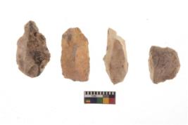 | Description / विवरण | There are n 4 of utilized worked cores and show irregular scar pattern on both dorsal and ventral side. One has a broken tip. |