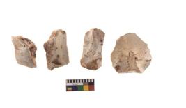 | Description / विवरण | There are n 4 of utilized worked cores and show irregular scar pattern on both dorsal and ventral side. Two have a broken tip. |