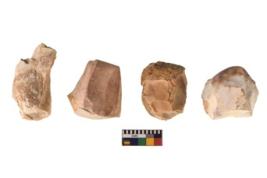 | Description / विवरण | There are n 4 of utilized worked cores and show irregular scar pattern on both dorsal and ventral side. Three have a broken tip. |