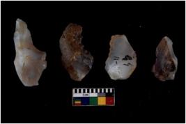 | Description / विवरण | There are n 4 of utilized worked cores and have irregular scar pattern on both dorsal and ventral sides. Three are elongated in shape. |
