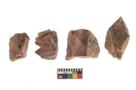 | Description / विवरण | There are n 4 of utilized worked cores and show irregular scar pattern on both dorsal and ventral side. One is tapering at one end. |