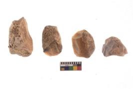 | Description / विवरण | There are n 4 of utilized worked cores and show irregular scar pattern on both dorsal and ventral side. Three have a broken tip. |
