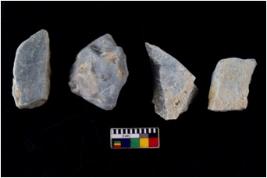 | Description / विवरण | There are n 4 flakes tool; there are large flakes with sides trimmed, Marks of secondary flaking are present on the both the faces. The dorsal is relatively flat |
